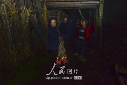 一般要到快過(guò)春節(jié)的時(shí)候,男方家才專門請(qǐng)人去接女方來(lái)洗糯米、打糍粑,新娘方能在夫家住上一夜;在來(lái)年農(nóng)忙時(shí)節(jié),又接女方來(lái)幫忙,夜里仍不能在男方家留宿,幫完忙當(dāng)晚即回去,只有待到女方有身孕后,新娘才到夫家長(zhǎng)住。圖為11月16日夜,新娘潘芝銀家為準(zhǔn)備婚禮,燈火徹夜長(zhǎng)明。