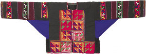 北京服裝學(xué)院民族服飾博物館藏貴州雷山地區(qū)苗族花蝶紋貼補(bǔ)刺繡背扇片。