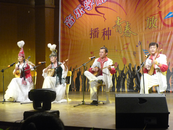 早在本世紀(jì)初,新疆師范大學(xué)音樂學(xué)院就曾在意大利、新西蘭和澳大利亞的國際樂壇,依靠本土特色作品奪得了多枚金牌。近年來,學(xué)院老師、學(xué)生依然保持這一傳統(tǒng)優(yōu)勢(shì),在各項(xiàng)文藝賽事、藝術(shù)展演中獲獎(jiǎng)無數(shù)。2009、2010年學(xué)院民族樂隊(duì)與香港中樂團(tuán),在兩地聯(lián)袂上演“穿越時(shí)空、絲綢之路”音樂會(huì),引起香港、新疆兩地觀眾的熱烈反應(yīng),包括中央電視臺(tái)、鳳凰衛(wèi)視等主流媒體對(duì)音樂會(huì)進(jìn)行了深度報(bào)道,被譽(yù)為近年來理念與藝術(shù)的完美結(jié)合。學(xué)院木卡姆樂團(tuán)、冬不拉樂團(tuán)還在2012年文化部文華藝術(shù)院校獎(jiǎng)比賽中獲得五項(xiàng)大獎(jiǎng),在國內(nèi)引起巨大反響。
