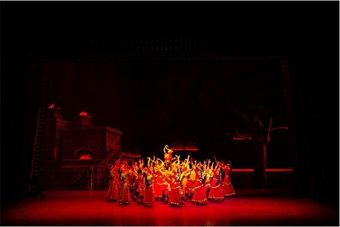 在手段創(chuàng)新上,主創(chuàng)人員在嚴格遵循南木特藏戲藝術(shù)傳統(tǒng)和戲劇原則的基礎(chǔ)上,設(shè)計了部分新的唱腔,使用了現(xiàn)代舞臺的舞美和聲光電手段,采用了26人組成的中型民族樂隊,從而營造出了全新的舞臺效果。在藝術(shù)手法上,還采用了以南木特藏戲手段表現(xiàn)西藏藏戲內(nèi)容的特殊表現(xiàn)形式,以戲中戲的重疊盡顯不同風格的藏戲風采,大大地豐富了表演手段和出彩看點,為觀眾提供了巨大的想象空間。