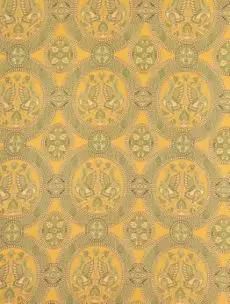 宋錦也具有獨特的藝術風格。它以變化幾何為骨架,如龜背、四答暈、六答暈、八答暈等,內填自然花卉、吉祥如意紋等,配以和諧的底色和略加對比色彩的主花,使之艷而不俗,古樸高雅。