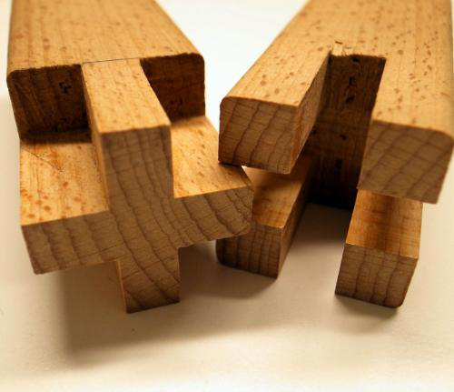 傳統(tǒng)榫卯結(jié)構(gòu)技術(shù)要求:榫頭厚度小于榫眼寬度0.1-0.2mm,當(dāng)榫頭厚度大于榫眼寬度時由于擠壓引起膠液流失從而降低膠合強度,裝配時也容易使榫眼開裂。榫頭寬度比榫眼長度大0.5-1mm,硬材為0.5mm,軟材為1mm。榫頭長度比榫眼深度小2-3mm并大于榫眼零件厚度的一半。直角榫頭的厚度:單榫接近于方才厚度的0.4-0.5,雙榫的總厚度也需接近此數(shù)值。