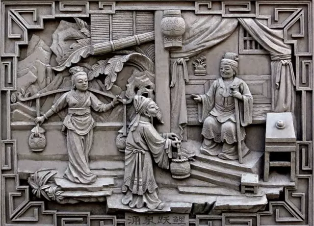 磚雕指在青磚上雕出山水、花卉、人物等圖案,是古建筑雕刻中很重要的一種藝術形式。