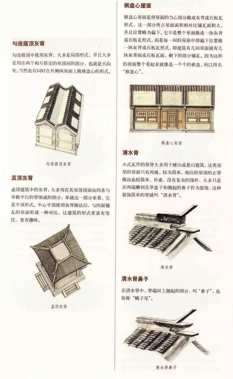 中國古代建筑屋頂不僅樣式多,而且組成部分也有好幾種,主要由屋面、屋脊等部分組成,而且有嚴(yán)格的等級制度。