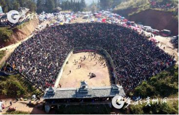 2018年11月27日,貴州省從江縣丙妹鎮(zhèn)松學(xué)斗牛塘,人山人海觀(guān)看斗