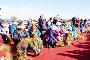 當(dāng)然,后來那達(dá)慕增加了許多新項目,比如賽駱駝、提水、縫蒙古袍扣子、撿牛糞、打斷牛骨比賽、蒙古象棋比賽、沙嘎(羊拐)比賽等。在北京舉辦的那達(dá)慕里,還融入了現(xiàn)代三大球類比賽項目,為了集體參與,增加了拔河比賽、扔沙包、服飾比賽、兒童說蒙古語比賽、兒童唱歌比賽等。