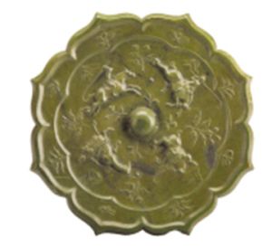 目前我國僅存三面有關(guān)打馬球圖案的銅鏡,一件為故宮博物院的傳世品,另一件收藏于安徽懷寧縣博物館,而以揚(yáng)州出土的這一面銅鏡保存最好,是唐鏡中的珍品。這枚打馬球紋銅鏡收藏于江蘇省揚(yáng)州博物館,直徑18.5厘米、厚1厘米,1965年出土于揚(yáng)州邗江泰安金灣壩工地。鏡為菱花形,圓鈕。鏡背主紋為4名騎士,有的高舉鞠杖,作搶球狀;有的俯身向前,鞠杖向下,作擊球狀;四馬馳騁,四人搶球,氣氛熱烈緊張;人與球之間襯以高山、花卉紋,顯現(xiàn)出在郊外運(yùn)動(dòng)場比賽的情景,更添一絲活潑的生活氣息。