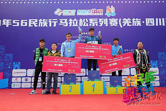 民馬(羌族?四川理縣站)是四川省首場(chǎng)民族特色馬拉松賽事,也是羌年第一跑。比賽吸引了全國(guó)17個(gè)省市、9個(gè)民族的兩千多名參賽選手,“親民族,跑民馬”,一起歡度羌年,了解羌族獨(dú)特的民俗文化。選手們從東方古堡桃坪羌寨出發(fā),經(jīng)過(guò)激烈的角逐,最終沙正友、洪躍、馬昭尖分別以1小時(shí)08分19秒、1小時(shí)10分31秒、1小時(shí)10分38秒的成績(jī)獲得男子半程馬拉松前3名,李春霞、谷錦錦、潘素芳分別1小時(shí)26分2秒、1小時(shí)26分24秒、1小時(shí)30分11秒的成績(jī)獲得女子半程馬拉松前3名。