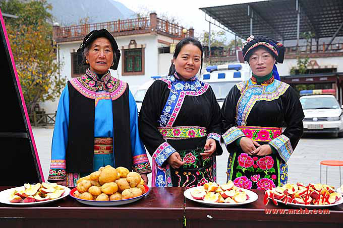 羌族群眾自發(fā)提供當(dāng)?shù)赝撂禺a(chǎn)。