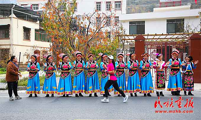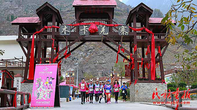 運(yùn)動(dòng)員經(jīng)過(guò)美麗的理縣木卡羌寨。