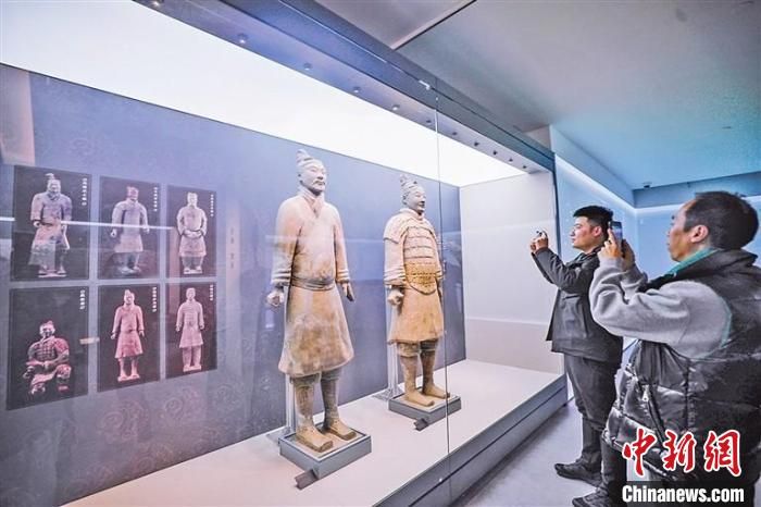 “除了秦始皇帝陵博物院,我們還向浙江省博物館、浙江省考古所、安吉縣博物館借了展品?!笨掳岔槺硎荆慰蛠淼竭@里,既能看到兵馬俑等文物,也能通過圖文并茂形式了解秦磚、漢瓦、兵器等知識,到了二樓還能享受與兵馬俑有關(guān)的沉浸式互動體驗(yàn)。