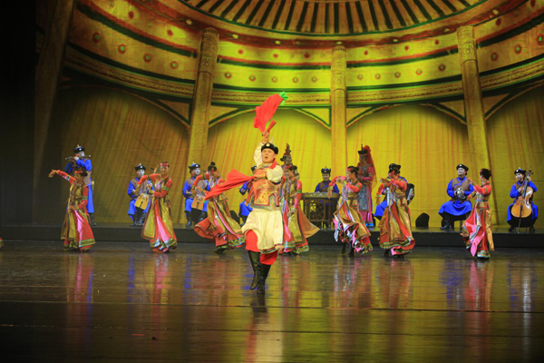 作為蒙古民族歌舞和民俗風情最具代表性的經典節(jié)目,《鄂爾多斯婚禮》已風靡草原,享譽國內外。那動聽悠揚的歌曲,優(yōu)美豪放的舞姿,華麗獨特的服飾,特別是那貫穿其中的鄂爾多斯蒙古族民間婚禮儀式,情節(jié)曲折,情思深幽,再現(xiàn)草原久遠而優(yōu)美的傳統(tǒng),表現(xiàn)了鄂爾多斯蒙古族人民對生活的熾熱情感和豪爽善良的性格,反響熱烈,久演不衰。