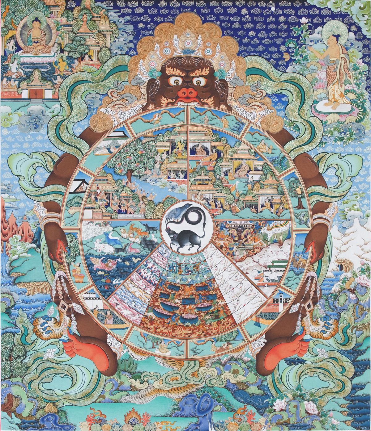 一切有情,皆以諸欲因緣,自作自受,如車(chē)輪回轉(zhuǎn)不已,生死于六條道趣,接受制裁。所謂六道,即:人、天(化生)、阿修羅(魔)、地獄、餓鬼、畜生(三惡道)。然在六道中,卻以人道為中心,因人心的善惡觀念而隨心所欲的去追求,造成報(bào)果。如人在日常中的語(yǔ)言、動(dòng)作、思想,守法實(shí)踐持三戒(五戒:不殺生、偷盜、邪淫、妄言、飲酒)以上者,可得六根整然的人身,五戒圓備者,即生大富大貴之家,長(zhǎng)壽而揚(yáng)名于世。修持五戒,加行十善(身:不殺生、偷盜、邪淫??冢翰粣嚎?、妄言、綺語(yǔ)、兩舌。意:不貪、瞋、癡。),即生天界,天分為欲界天、色界天、無(wú)色界天。上述五戒加十善,乃生欲界天,再加修正觀坐禪,證初禪至四禪,即生色界天。趨入四空定,即生無(wú)色界。但雖至非想非非想天,還是降伏業(yè)惑而已,無(wú)法脫離生死輪回,故古人說(shuō):三界無(wú)安,猶如火宅。如果人于日常生活中,雖有十善心布施,但帶有名利好勝,即生阿修羅界(須彌山腰),阿修羅是具天福而缺天德,因地污曲所致。如果人于日常中,失去道德戒行,生起慳貪心,即墮餓鬼道界,生起瞋癡心,即墮畜生界,犯五逆十惡者,即墮地獄界。以上釋義引自《君友會(huì)、六道輪回卷》綜上:六道輪回的善惡報(bào)趣,盡在人心的一念,能趨于善,即上升天界,起一念?lèi)?,即墮惡道,因果昭彰?/p>
