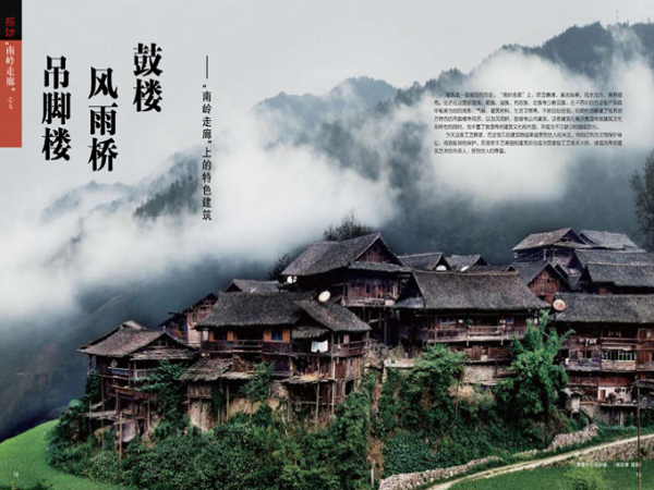 建筑是一部凝固的歷史。“南嶺走廊”上,層巒疊嶂,溪流縱橫,雨水充沛,森林密布。生活在這里的苗族、侗族、瑤族、布依族、壯族等少數(shù)民族,在千百年的勞動(dòng)生產(chǎn)實(shí)踐中根據(jù)當(dāng)?shù)氐牡匦?、氣候、建筑材料、生活?xí)慣等,不斷總結(jié)經(jīng)驗(yàn),創(chuàng)造性地修建了獨(dú)具地方特色的吊腳樓等民居,以及風(fēng)雨橋、鼓樓等公共建筑,這些建筑在展示我國傳統(tǒng)建筑文化多樣性的同時(shí),也豐富了我國傳統(tǒng)建筑文化的內(nèi)容,成為不可缺少的組成部分。
