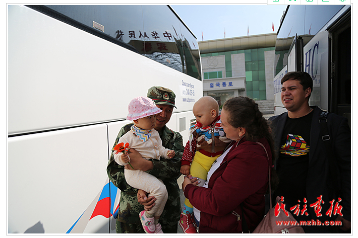 第一次來琿春旅游的俄羅斯游客亞娜帶著她1歲的寶寶剛?cè)刖常∏捎龅綆Ш⒆映鰜淼闹袊?guó)邊防戰(zhàn)士,他們便打起了招呼