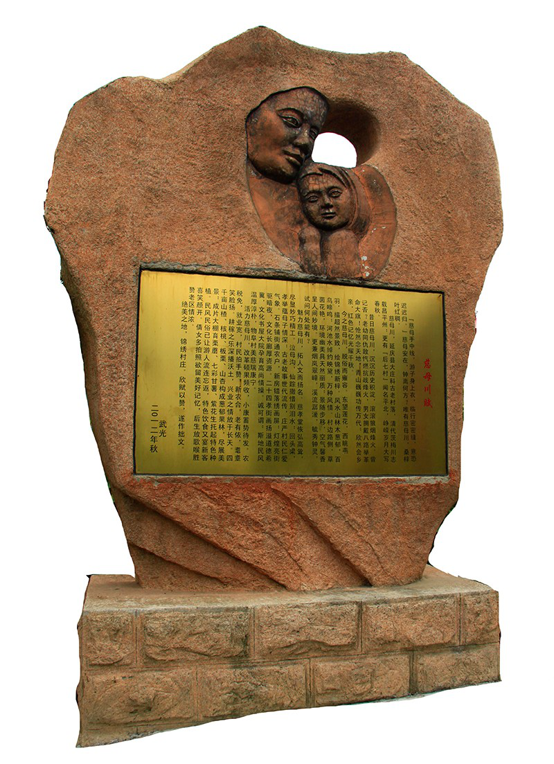 從花藤環(huán)繞的村門進入村子,一座巨石浮雕映入眼簾,上刻慈母孝子,下刻慈母川賦。沿新修的主干道前行,左側(cè)民居古樸,錯落有致,庭院優(yōu)雅,賞心悅目;右側(cè)河水清澈,錦鯉暢游,小橋流水,山影斜疏。新建的村民文化廣場,與對面的滿族風情展示墻、健身廣場隔路相望。路邊高大的垂楊柳上懸掛著長長的秋千,悠閑的老人正坐在上面曬太陽。