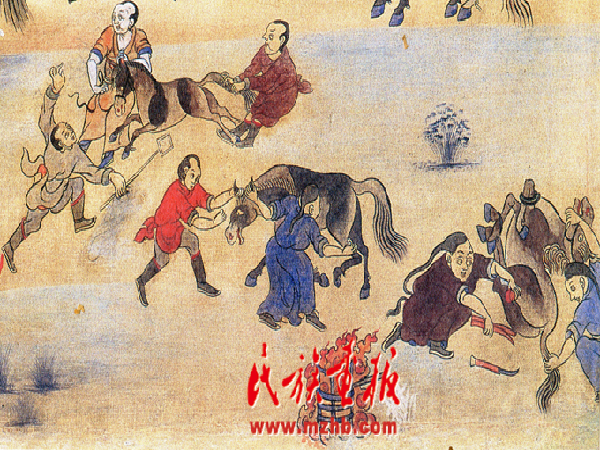 放牧遠行,馬是重要的交通工具;嫁娶新人,要以駿馬為坐騎;宗教神話中,馬是神的代言者;草原盛會,賽馬是必不可少的內容;在蒙古族民間傳說和歌謠中,對馬的贊頌更是比比皆是。馬是蒙古人日常生活最親密的伙伴,蒙古人有特別濃厚的戀馬情結,這就是我們說的“馬文化”現象。蒙古族的馬文化是在長期生產生活中逐漸形成、演化、發(fā)展而來的。曾是軍事、交通運輸、農業(yè)生產等活動的主要動力。