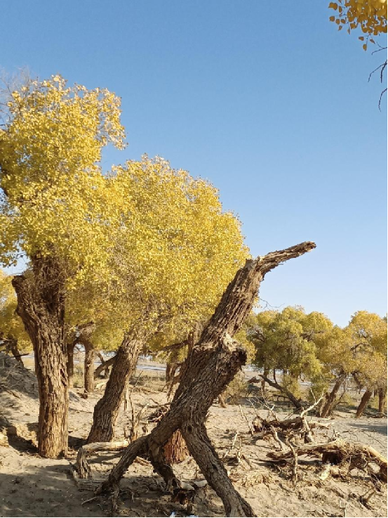 胡楊,又稱胡桐、英雄樹、異葉胡楊、異葉楊、水桐、三葉樹,是生長在沙漠中的樹種,它耐寒、耐旱、耐鹽堿、抗風沙,有很強的生命力。