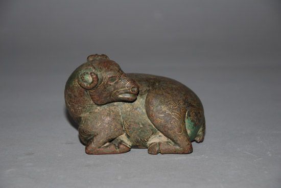 “羊”即通“祥”,“吉羊”即“吉祥”,古人把羊作為吉祥物予以崇拜,并以求吉祥多福之意。漢代較為流行羊形燈,還有羊形石鎮(zhèn)。所以這件器物大概也是用作鎮(zhèn)。