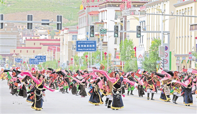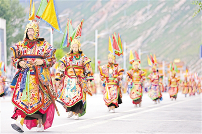 2017年7月24日下午,一場名為“瀟灑的康巴人”玉樹風情巡游在玉樹藏族自治州州府玉樹市街頭上演。來自玉樹州一市五縣的康巴藏族兒女或馭駿馬、或盛裝、或歌舞,以行走巡游的方式展示當?shù)鬲毦咛厣拿褡迕袼孜幕8骺h巡游隊伍從感恩廣場出發(fā),途徑結(jié)古大道、民主路,最終到達玉樹軍分區(qū),沿途圍滿了觀看的群眾和游客,據(jù)悉,此次巡演在玉樹州尚屬首次。