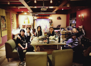 民宿不提供餐食,但設(shè)有開(kāi)放式廚房,天南海北的有緣人齊聚于此,各顯身手,呈現(xiàn)出一大桌美食,對(duì)酒當(dāng)歌,歡笑晏晏,民宿的隨性,讓人恍若回到家里一樣溫暖、親切。
