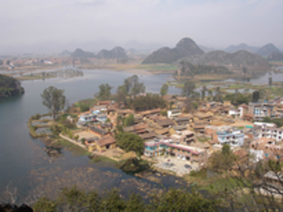 因此,自仙人洞村列為文化生態(tài)村建設(shè)之后,村民的收入至少在統(tǒng)計(jì)學(xué)意義上一年比一年高:1998年人均收入為850元,1999年人均1100元,增幅為9.5%;2000年人均1500元,增幅為15%;2001年人均2300元,增幅為30%;2002年,村民人均收入達(dá)3000余元。之后逐漸增加,到2004年人均收入超過3000元,躍升為丘北縣人均收入最高的自然村落。這也是仙人洞村新建民居大批涌現(xiàn)乃至已經(jīng)改變村落原貌(比較圖10、11)的動(dòng)力所在。相比較而言,與仙人洞村隔湖相望的普者黑村,盡管是文山州境內(nèi)最大的一個(gè)自然村(全村900多戶,5000 余人),甚至保持的民族文化特色更加顯著,并一直是普者黑村級(jí)的政治中心,但是它所獲得的資源無法與仙人洞村比擬。筆者考察所看到的村景、道路、民居等基本保持“未開發(fā)狀態(tài)”,僅在靠近湖邊的地方稀疏散落有幾家旅游接待的農(nóng)家樂。其他試點(diǎn)村落與其周邊村落的情形與這里的狀況基本類似。需要指出的是,上述居民收入增加可以說明文化生態(tài)村建設(shè)在改善村