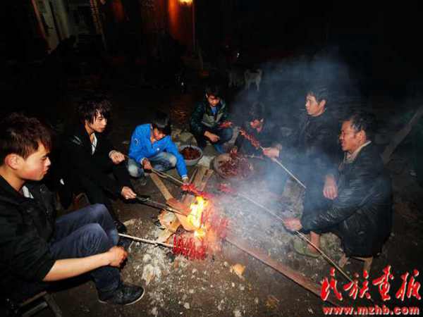 這次結婚的共有15對新人(多時有二三十對),均來自本寨的青年男女?;槎Y從大年二十六開始,共進行三天,在三天的婚禮中新郎新娘家均有婚宴,尤以第一天中午的規(guī)模最大也最為隆重。