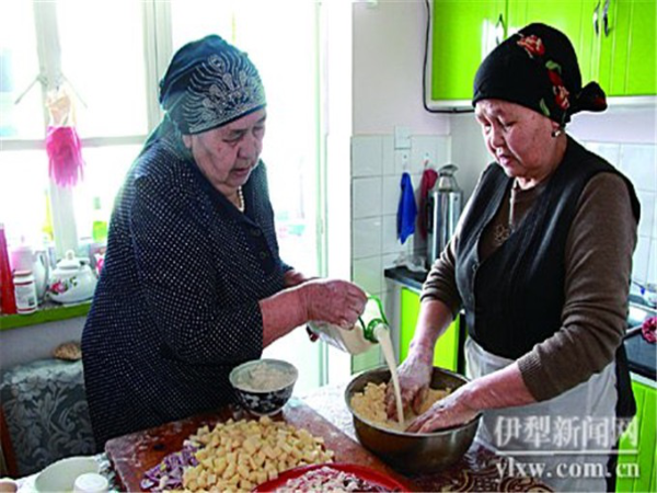 如今,她和姐姐經(jīng)?;ハ啻T(mén),一起做拜列西。做好后,一家人圍坐在一起,喝茶,吃拜列西,聊天?!耙涣钠饋?lái),就沒(méi)個(gè)完。”買(mǎi)斯胡旦笑說(shuō)。采訪(fǎng)當(dāng)日,她即把姐姐邀來(lái),跟她一起做塔塔爾族的這種傳統(tǒng)食物。