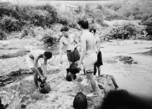 有一天,我在通什(今五指山市)的一條河邊,看見有幾個(gè)黎族人抱著大葫蘆過河。我趕緊拿出相機(jī),在河邊的大石頭間跳來(lái)跳去追拍。沒想到一不留神就跳空了,重重地摔在石頭上,造成了骨裂,當(dāng)時(shí)就不能動(dòng)彈了,在醫(yī)院里躺了好長(zhǎng)一段時(shí)間。