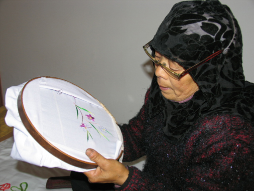 刺繡花草圖案和幾何圖形,是回族婦女刺繡的絕技。如枕頭、坎肩、掛圖、圍裙等處繡的花卉,形象非常逼真。有些刺繡作品,很注意變化裝飾,給人以整體美。她們往往擷取大自然中各種不同的植物葉,構(gòu)成自己想象中的花草樹(shù)木,技與葉、花與蔓和諧地統(tǒng)一?;刈鍕D女刺繡技藝,既富有生活特色,又充滿美好愿景。