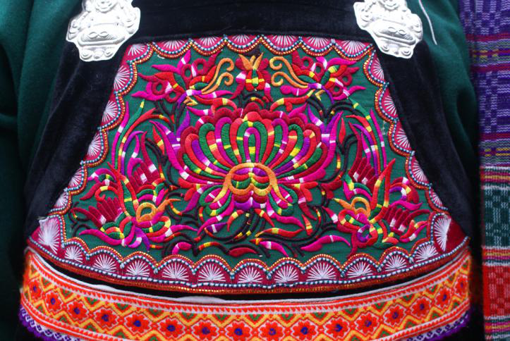 水族水家布水家布是主要居住在云貴高原東南部的曲嶺山脈以南、都柳江和龍江上游的水族居民使用的布料。為防毒蛇扎花邊大多數(shù)已婚婦女的衣服都有花邊。傳說很早以前,水族人民居住的地方山高林密、雜草叢生、毒蛇為患。一個名叫秀的水族姑娘,用彩色絲線在衣領(lǐng)、袖口、襟邊、褲腳上繡上一條條紅紅綠綠的花邊,又在鞋上繡上一些花草。她穿上這身衣褲和鞋子,獨自去深山密林中砍柴,果然毒蛇見她就逃走了。此后,水族婦女服裝繡花邊的習俗就逐漸傳承下來。
