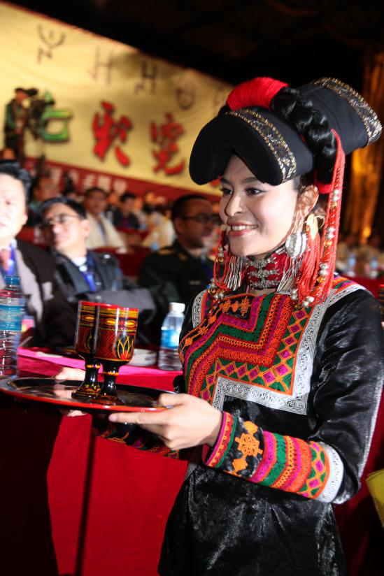 彝族飲料有茶和酒。彝族酒有白酒和連糟酒,白酒度數(shù)較高,連糟酒僅為10余度,其制作法與漢族無異。彝族人喜歡喝酒,涼山彝族每當(dāng)客人光臨,首先敬上去的是酒,其次才是茶。彝族有一種酒叫“咂酒”,就是把酒裝入罐中,把口封起來,喝的時(shí)候插上空心的竹管,喝酒者自己往竹管上咂,所以稱為“咂酒”。喝茶不像喝酒一樣在各彝族地區(qū)盛行,相比較而言,烏蒙山區(qū)的彝族更喜歡喝茶,濃度也較高,其做法是先將茶葉放在茶罐里烤熱后放冷水煮沸。涼山部分彝區(qū)還有喝奶茶的習(xí)俗,其做法和藏族同胞的做法有些類似。