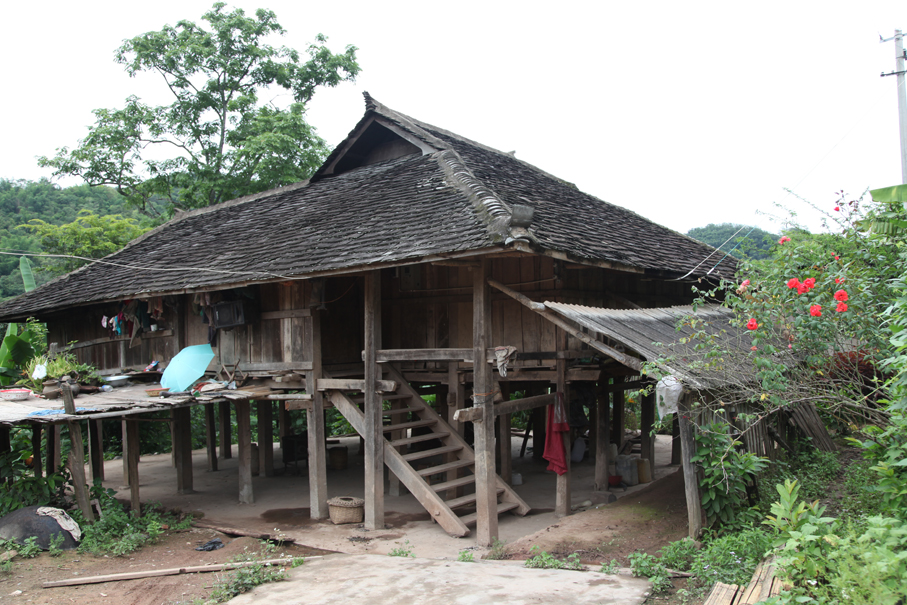基諾族現(xiàn)如今所使用的最多的就是傳統(tǒng)的干欄式“竹樓”。之所以稱為“竹樓”,蓋因其初期建筑材料多為竹子的緣故。實際上,在后來的發(fā)展中,木材逐漸成為主要的建房材料,房頂一般為茅草扎成的草排。根據(jù)杜玉亭等人的調(diào)查,普通民居一般都有6根中柱,26根邊柱。房屋分為兩層,上層住人,一般分隔為火塘、居室等空間,并有大小兩個曬臺;下層一般不設四壁,為堆放農(nóng)具、雜物及畜禽棲息之地。但是,各個村寨的情況又有所不同。頗具特色的是,許多村寨還曾經(jīng)存在過與父系大家庭相適應的“長房”。它是獨棟建筑在空間上的延伸,隨著大家庭人口的增長不斷加長形成。亞諾寨的長房最為有名,曾經(jīng)引起很多國內(nèi)外學者的注意,并有許多外國學者前來考察。最大的長房要數(shù)阿車繞氏族中嗎莫埃嗎長房,此長房在戶數(shù)人口最多時達28戶125人。