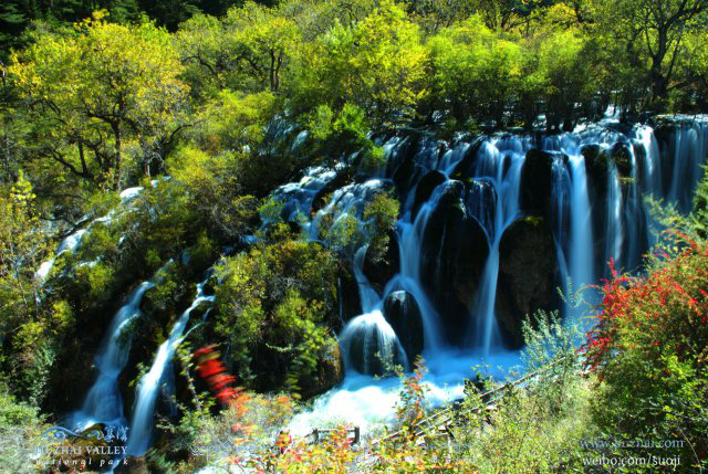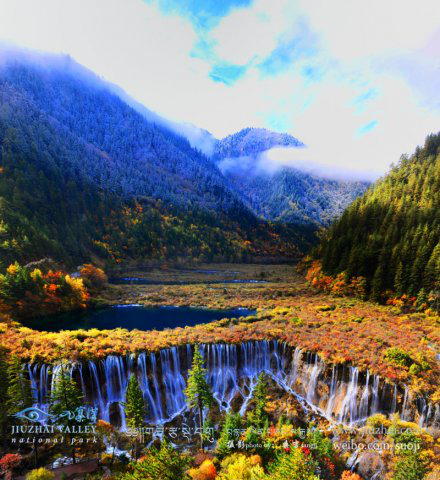 九寨溝是大自然鬼斧神工之杰作。這里四周雪峰高聳,湖水清澈艷麗,飛瀑多姿多彩,急流洶涌澎湃,林木青蔥婆娑。藍(lán)藍(lán)的天空,明媚的陽(yáng)光,清新的空氣和點(diǎn)綴其間的古老村寨、棧橋、磨坊,組成了一幅內(nèi)涵豐富、和諧統(tǒng)一的優(yōu)美畫(huà)卷,歷來(lái)被當(dāng)?shù)夭刈逋暈椤吧裆绞ニ?。九寨溝景區(qū)開(kāi)放后,東方人稱(chēng)之為“人間仙境”,西方人則將之譽(yù)為“童話(huà)世界”。