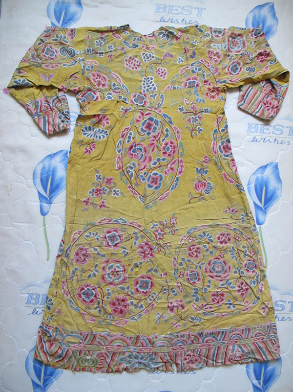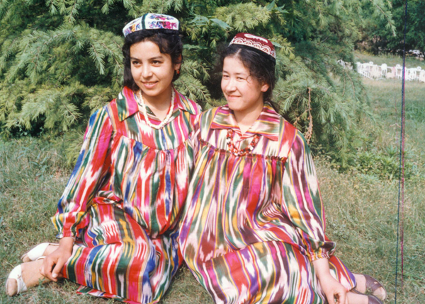 烏孜別克族女性喜愛(ài)穿連衣花裙,開領(lǐng),寬大多褶,不束腰帶。上衣比較短,只及大腿部,無(wú)領(lǐng)、無(wú)袖、對(duì)襟,下擺的正中和正面兩邊都開衩,形成兩片寬帶。襟和寬帶的邊都繡花。出門時(shí)還要穿斗篷、蒙面紗,從頭到腳都不能外露。