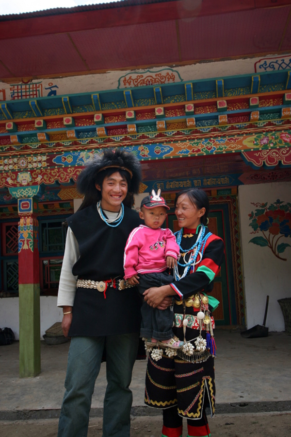隨著氏族制的解體,女子的社會地位逐漸下降,男子看重女子的貞操,因此公房因不合時(shí)宜而慢慢消失,由長房取代?!伴L房”崩尼語為“南塔”,與邦戈的區(qū)別在于其內(nèi)部有隔墻,在每個(gè)居室里設(shè)有火塘,有的一個(gè)家族住在一座長房內(nèi),形成一個(gè)大家庭。珞巴族大家庭形成的原因一般是一夫多妻或奴隸較多,妻子最多的有十多個(gè),多妻的主要原因是富有的男子可以隨意買賣女子或者是轉(zhuǎn)房。這種家庭的居住形式主要有各妻子不分居和不分居兩種,在丈夫的主持下共同生產(chǎn)生活。就珞巴族家庭形態(tài)的總體來看,仍以一夫一妻制的小家庭為主,因此存在長屋的同時(shí),每個(gè)部落都建有供一夫一妻的個(gè)體家庭居住的獨(dú)立小房,或?yàn)楦蓹谑剑驗(yàn)榈鼐邮健?/p>
