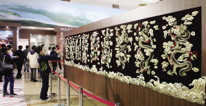 用優(yōu)質(zhì)大馬哈魚(yú)皮手工制作的工藝品”九龍壁”