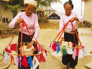 關于孔明燈的制作工藝,現(xiàn)在的年輕人掌握的已經不多了,主要還是靠老人。景洪市嘎灑鎮(zhèn)曼回索村60多歲的民間手工藝人巖妞就是做孔明燈很有名氣的老人。巖妞制作孔明燈已經有20多年了,他做的孔明燈飛得高,還能帶著鞭炮在空中啪啪炸響,增添了節(jié)日氣氛。在今年4月13日傣歷1374年新年節(jié)(潑水節(jié))來臨之際,巖妞忙得不亦樂乎,前來找他定做孔明燈的人絡繹不絕。