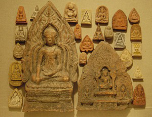 在泰國(guó)最北邊的城市清萊的一座古寺里,年長(zhǎng)的僧人告訴我,在泰國(guó),帕肯(“泰國(guó)擦擦”,泰語(yǔ)為“Phra-Kruang”,這個(gè)名詞在標(biāo)準(zhǔn)的泰文詞典里的解釋是:用于避兇消災(zāi)的小型佛像,作用相當(dāng)于護(hù)身符、祈愿物、供奉物。泰國(guó)的Phra-Kruang至今沒(méi)有一個(gè)公認(rèn)的中文名稱,既然“擦擦”是譯音,我便挑了兩個(gè)最接近泰語(yǔ)Phra-Kruang發(fā)音的字給它:帕肯)的使用方式是這樣的:最早是在修建寺廟的時(shí)候放入佛塔內(nèi),因?yàn)楣排量系膬?nèi)容全是佛像,經(jīng)過(guò)高僧們開(kāi)光后放入塔內(nèi)有增加靈氣的作用。百姓通常是到寺廟請(qǐng)回自己需要的帕肯回家供奉,或者作為還愿,出資請(qǐng)寺廟制作一定數(shù)量的帕肯,供奉在寺廟、家中或者贈(zèng)送親友。