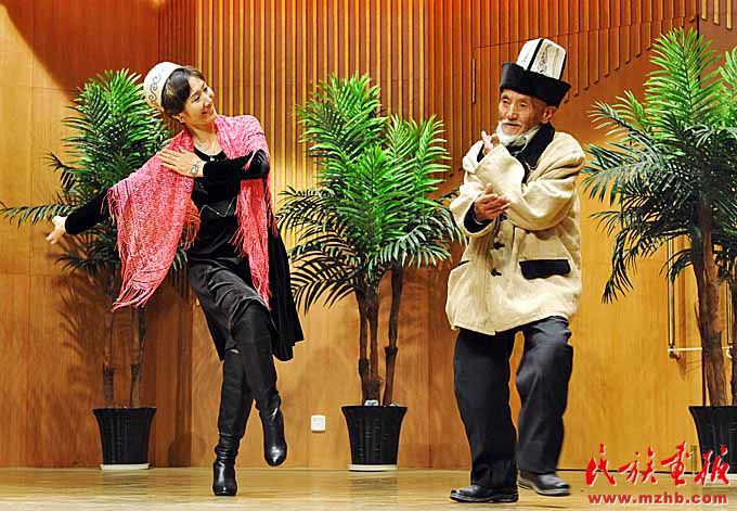 群眾和瑪納斯演唱大師居素甫·瑪瑪依同臺(tái)表演