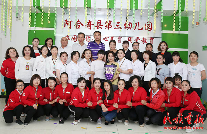 作為園長(zhǎng),她在鼓勵(lì)支持教師成長(zhǎng)的同時(shí),還非常注重自身素質(zhì)的全面提高。從理論水平到實(shí)踐能力,從專業(yè)素養(yǎng)到業(yè)務(wù)技能,從廣博的知識(shí)面到良好的學(xué)習(xí)習(xí)慣和方法,古麗孜娜提不斷充實(shí)和更新,以保持先進(jìn)和超前的意識(shí)。去年,在阿合奇縣教育局的安排之下,古麗孜娜提赴無錫學(xué)習(xí)帶隊(duì),與全縣13名教師去往美麗江南、援疆對(duì)口城市江蘇省無錫市進(jìn)行為期一個(gè)月的學(xué)習(xí)。她說:“通過這次的學(xué)習(xí),我進(jìn)一步了解和掌握了幼兒園辦學(xué)的先進(jìn)理念和管理模式,也確立了今后的工作目標(biāo)和方向?!彼Uf,必須堅(jiān)持把學(xué)習(xí)放在第一位,只有扎實(shí)、認(rèn)真地學(xué)習(xí),才能擴(kuò)展知識(shí)領(lǐng)域,更新知識(shí)結(jié)構(gòu),提高分析、解決問題的能力,才能提高自己的素養(yǎng)和園所的整體素質(zhì)?!?/p>