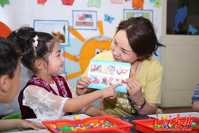 古麗孜娜提說,在她兒時(shí)記憶中,縣里的幼兒園、小學(xué)和中學(xué),只有幾排墻皮斑駁的平房和破桌椅。因條件太差,父母都想方設(shè)法將子女送到數(shù)百里外的城市讀書?,F(xiàn)在,幼兒園里,語音室、科學(xué)活動(dòng)室、舞蹈室等一應(yīng)俱全,雙語教師、保育員等人員也按相應(yīng)比例配備到位??h交通部門還安排兩輛專線車每天免費(fèi)接送第三幼兒園師生。能在條件這么好的幼兒園工作,她感到由衷的欣慰,同時(shí)也感到了壓力。