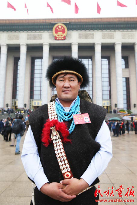 參加黨的十九大、西藏自治區(qū)珞巴族代表達(dá)波兒(滕俊 攝影)