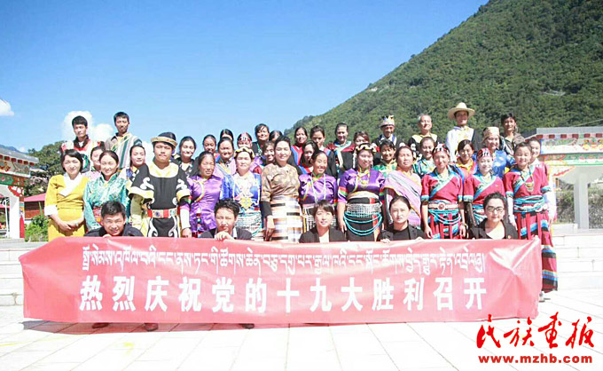 珞巴族聚居地——西藏自治區(qū)林芝市墨脫縣達(dá)木珞巴民族鄉(xiāng)的珞巴族群眾和其他各族群眾歡慶黨的十九大勝利召開(kāi)(孔垂義 攝影)