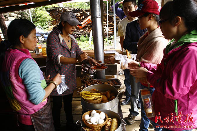 珞巴族農(nóng)家樂(lè)小吃攤也吸引了許多游客(列來(lái)拉杜 攝影)