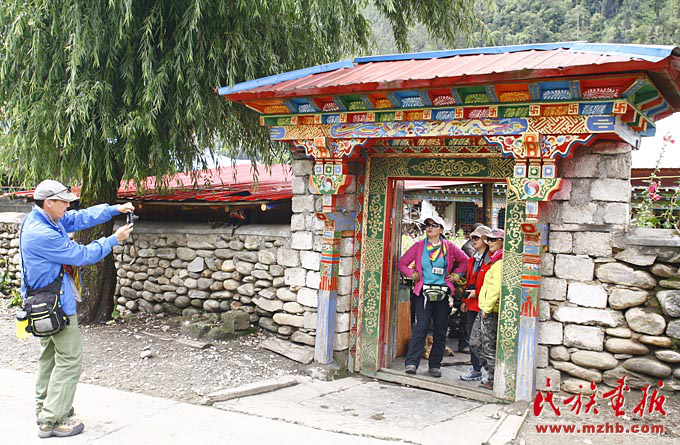 在珞巴族家門(mén)前留影紀(jì)念的游客絡(luò)繹不絕(列來(lái)拉杜 攝影)