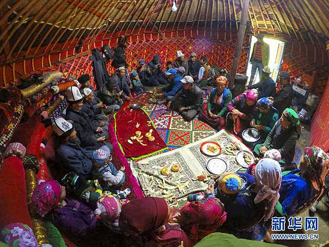 在“鐵日孜窩孜”夏牧場(chǎng),喀拉塔什其木干村的村民們聚在一起分享美食