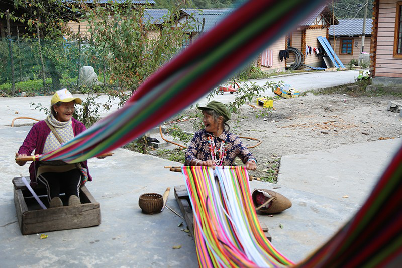習(xí)總書記接見后,李文仕(左)回村繼續(xù)織起獨(dú)龍?zhí)?。如今?dú)龍?zhí)阂殉蔀楠?dú)龍女重要的創(chuàng)收來(lái)源