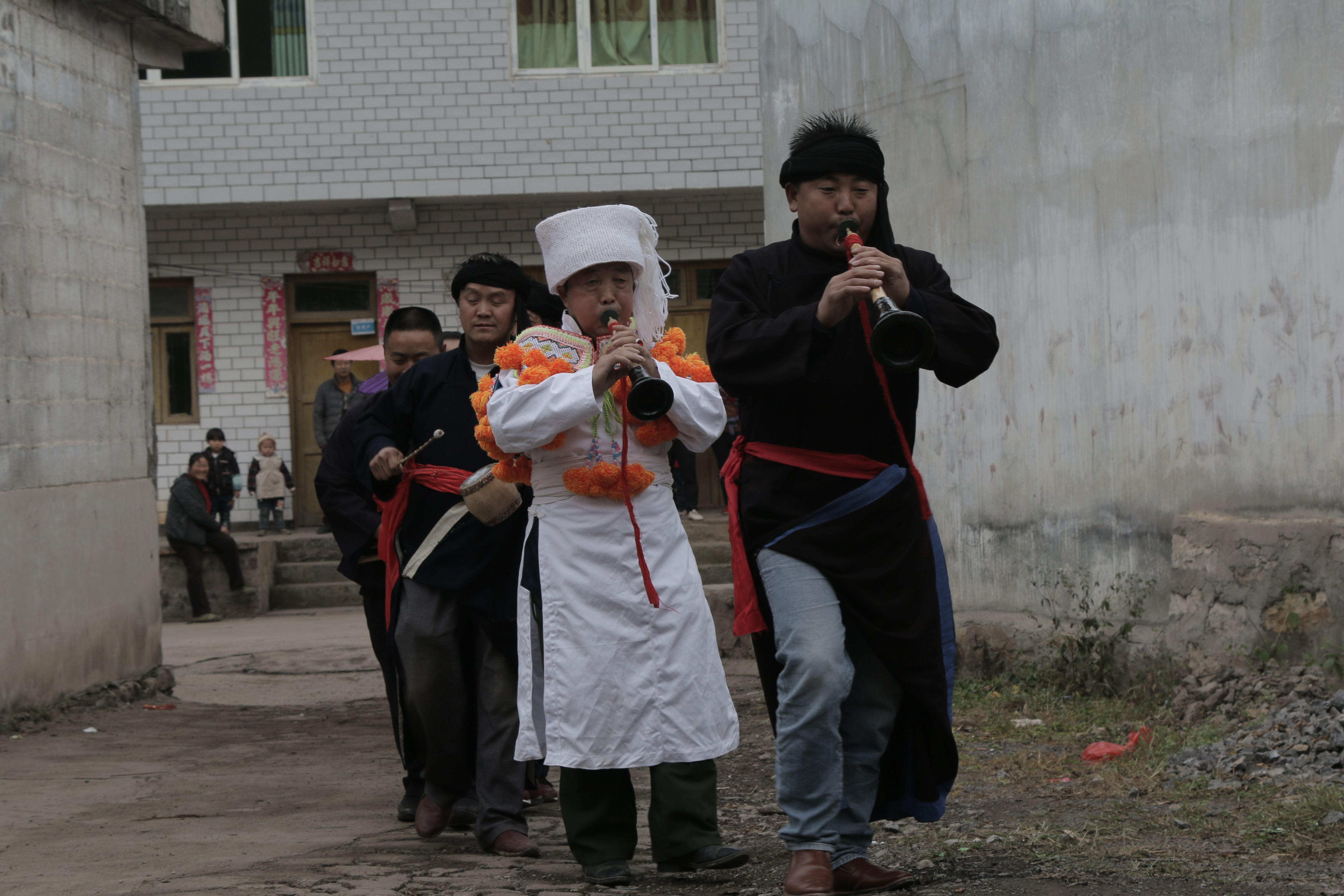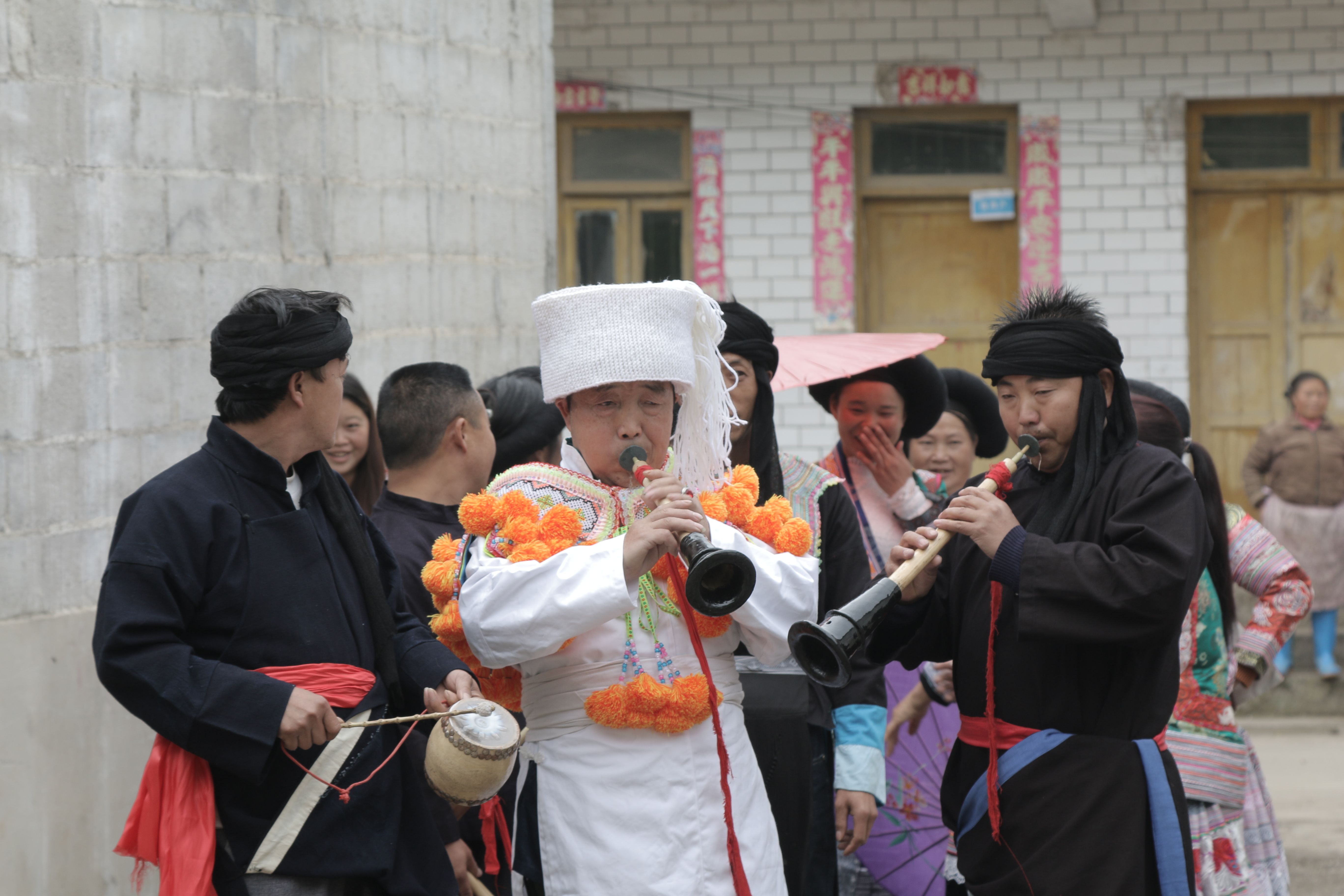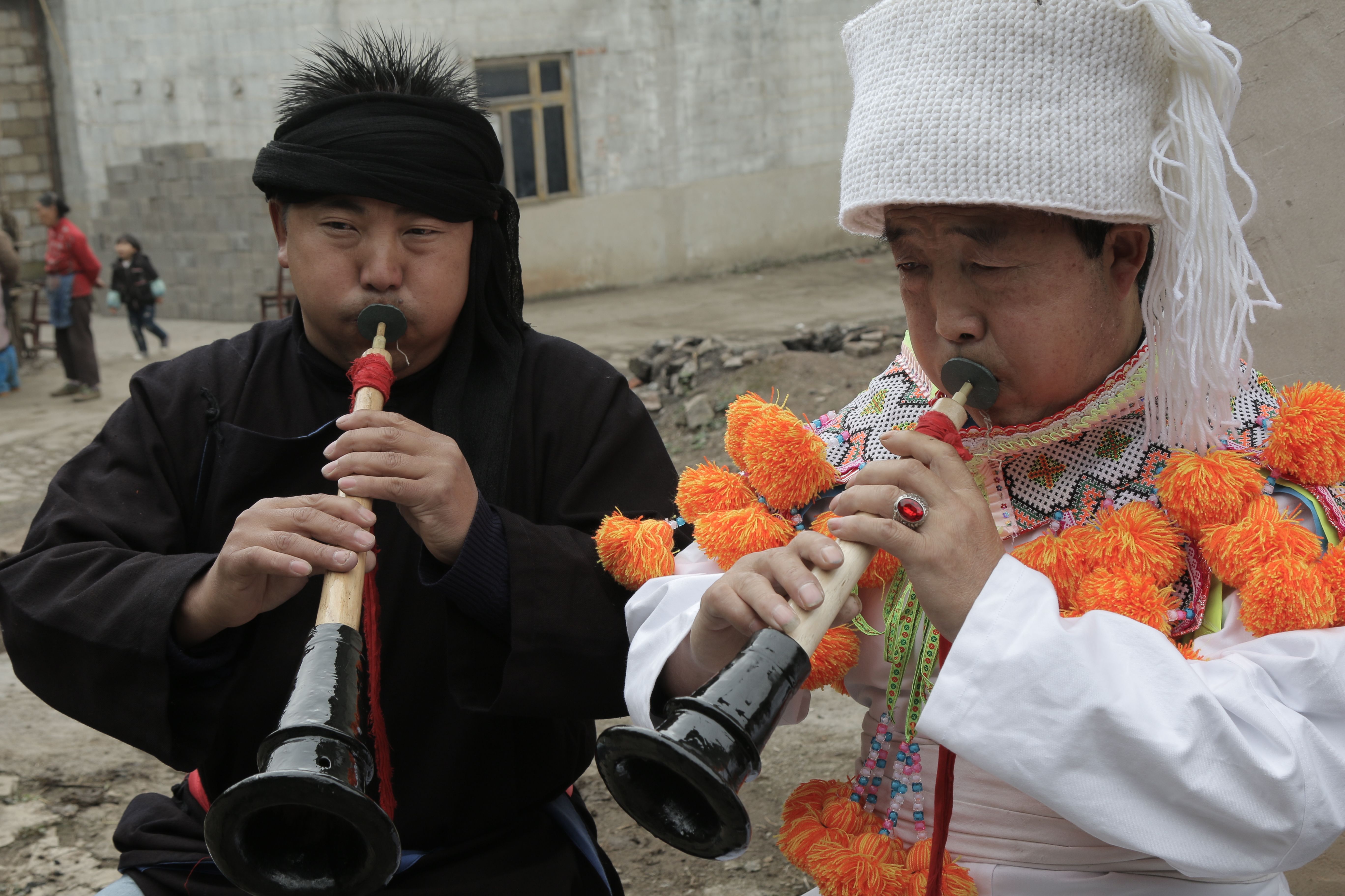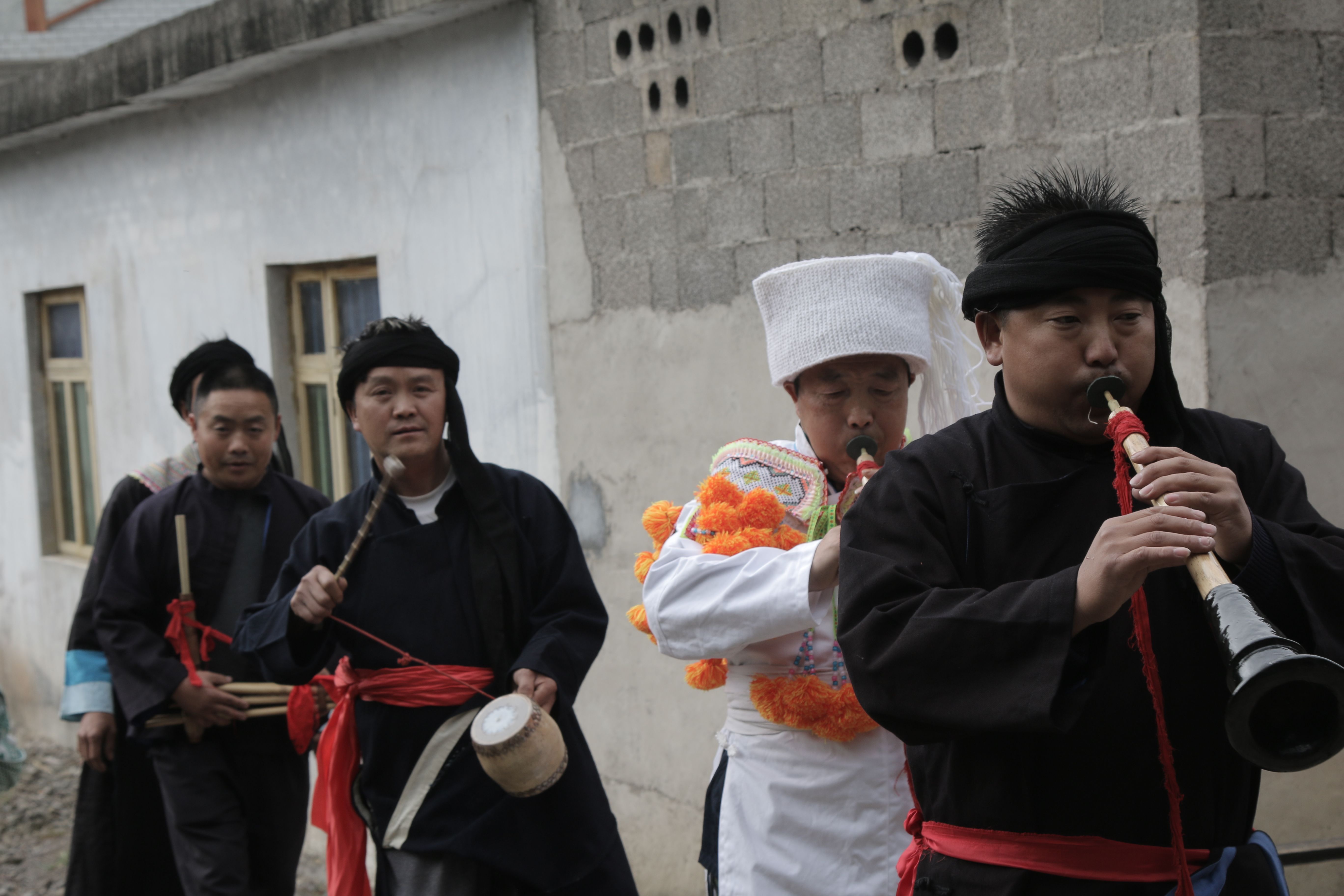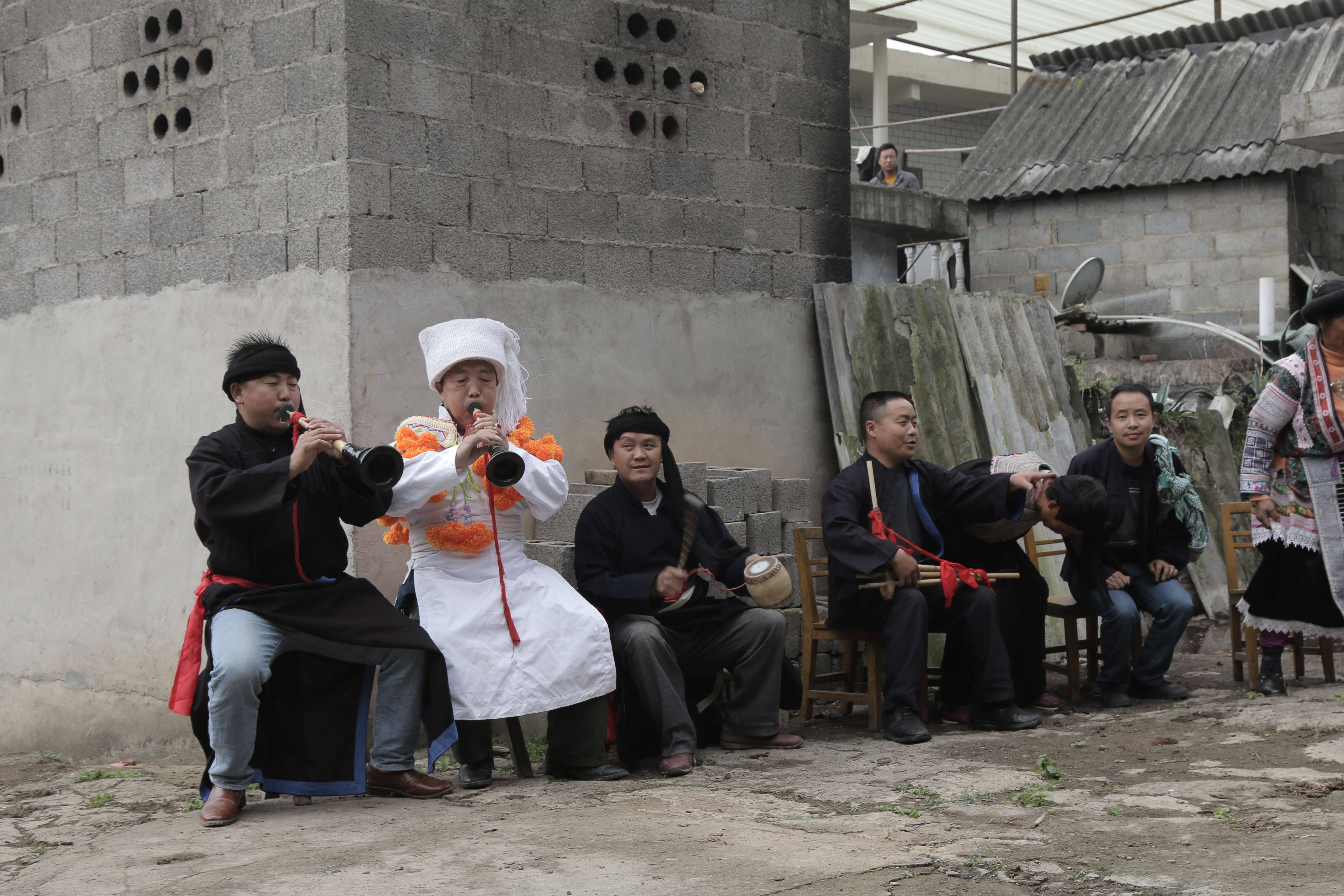 圖片名稱:貴州貴陽苗族婚禮上的奏樂