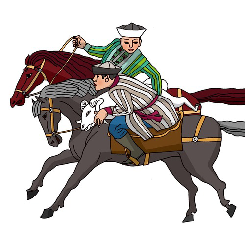 柯?tīng)柨俗巫?馬上角力):柯?tīng)柨俗巫逵?41549人,聚居在新疆克孜勒蘇柯?tīng)柨俗巫灾沃???聽(tīng)柨俗巫逯饕w育項(xiàng)目有賽馬、刁羊、摔跤、馬上角力、跑馬拾銀元、跑馬射元寶、月下尋物等。